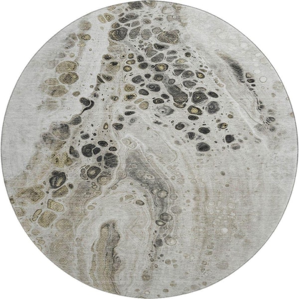 Mayfield Premium Machine Washable Abstract AMF1935 Taupe 8 ft. x 8 ft. Round Rug