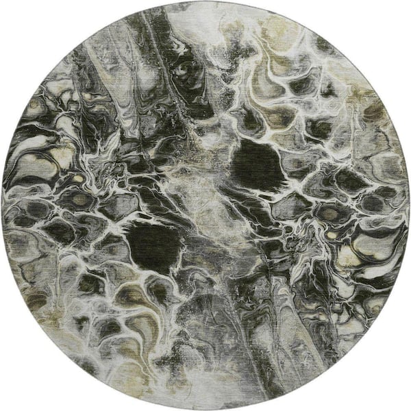 Mayfield Premium Machine Washable Abstract AMF1936 Pewter 8 ft. x 8 ft. Round Rug