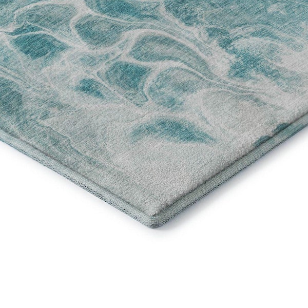 Mayfield Premium Machine Washable Abstract AMF1936 Teal 8 ft. x 10 ft. Area Rug