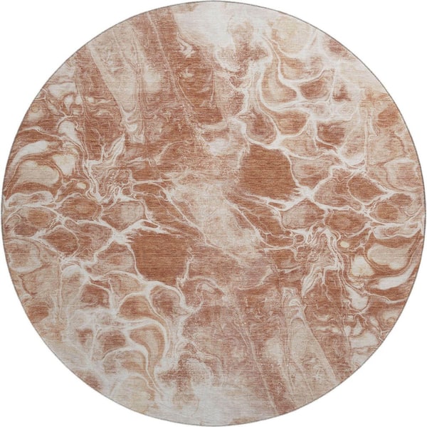 Mayfield Premium Machine Washable Abstract AMF1936 Terracotta 8 ft. x 8 ft. Round Rug