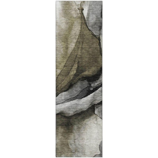 Mayfield Premium Machine Washable Abstract AMF1937 Gray 2 ft. x 7 ft. Runner Rug