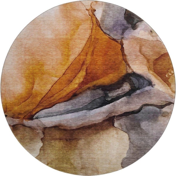 Mayfield Premium Machine Washable Abstract AMF1937 Paprika 8 ft. x 8 ft. Round Rug