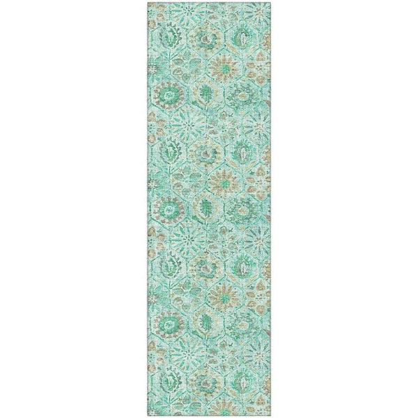 Mayfield Premium Machine Washable Abstract AMF1938 Aqua 2 ft. x 7 ft. Runner Rug