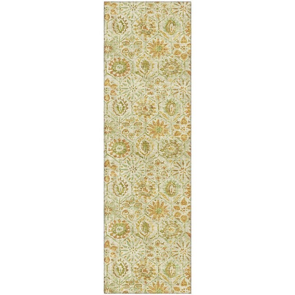 Mayfield Premium Machine Washable Abstract AMF1938 Beige 2 ft. x 7 ft. Runner Rug