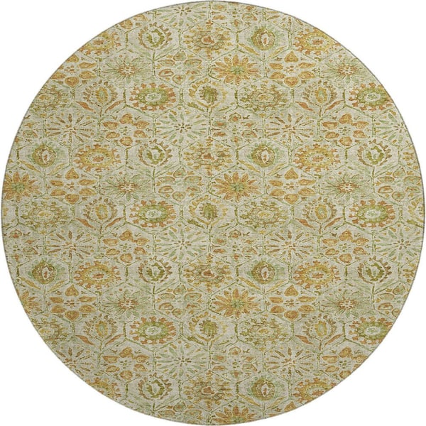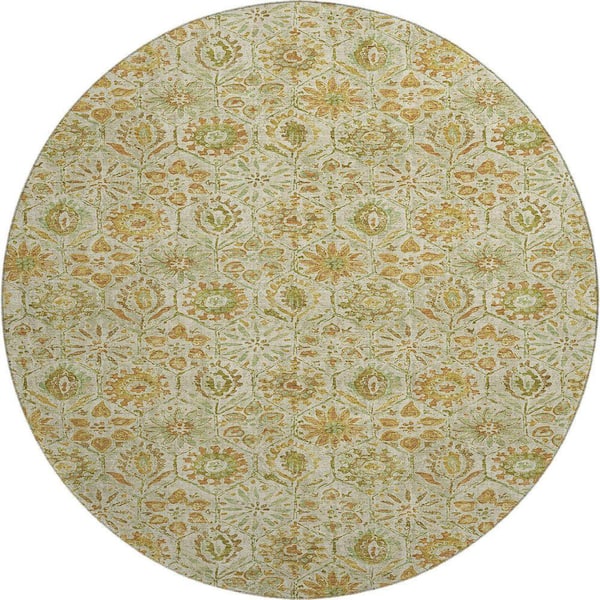 Mayfield Premium Machine Washable Abstract AMF1938 Beige 8 ft. x 8 ft. Round Rug