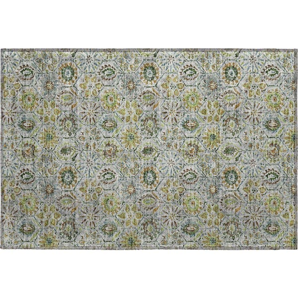 Mayfield Premium Machine Washable Abstract AMF1938 Green 2 ft. x 3 ft. Accent Rug