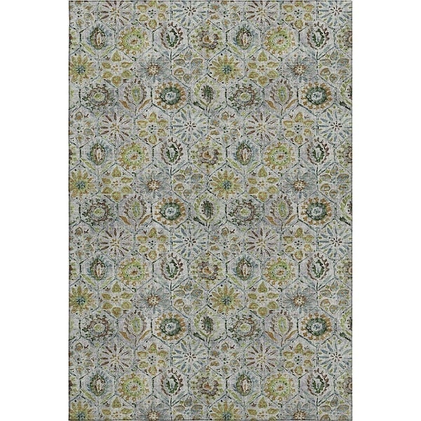 Mayfield Premium Machine Washable Abstract AMF1938 Green 8 ft. x 10 ft. Area Rug