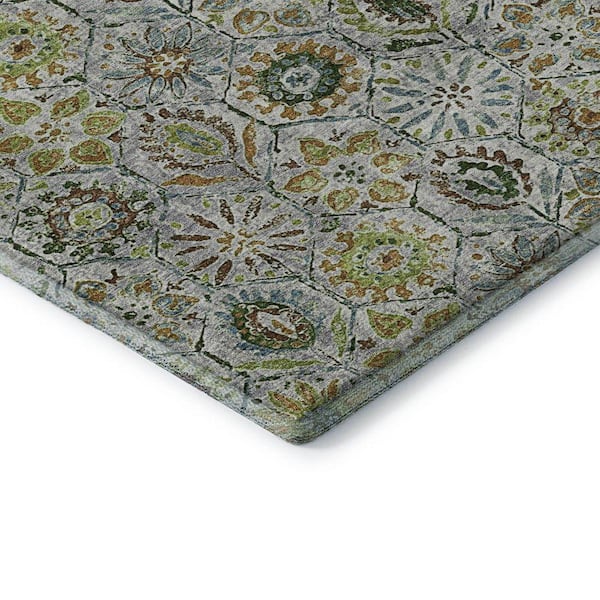 Mayfield Premium Machine Washable Abstract AMF1938 Green 9 ft. x 12 ft. Area Rug
