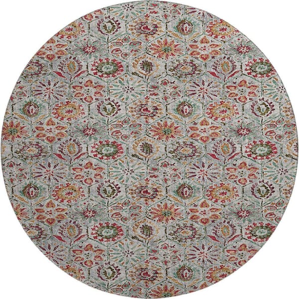 Mayfield Premium Machine Washable Abstract AMF1938 Paprika 8 ft. x 8 ft. Round Rug
