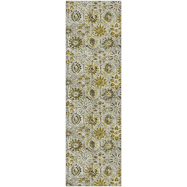Mayfield Premium Machine Washable Abstract AMF1938 Pewter 2 ft. x 7 ft. Runner Rug