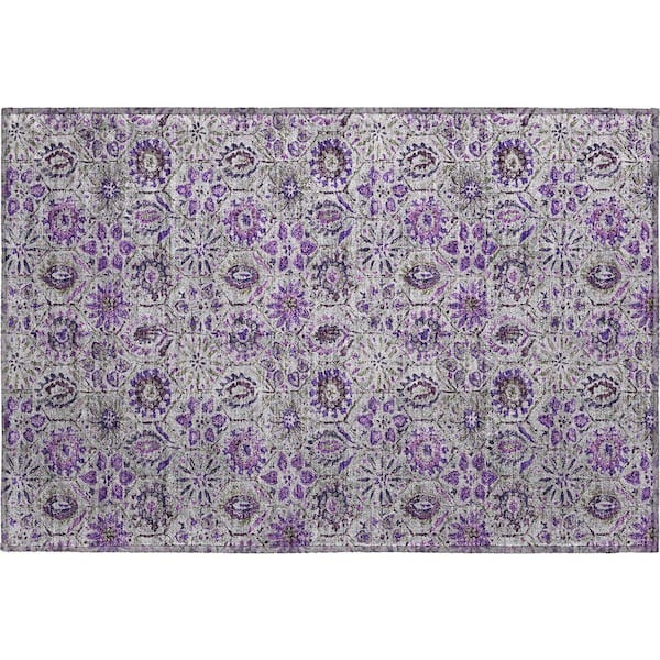 Mayfield Premium Machine Washable Abstract AMF1938 Purple 2 ft. x 3 ft. Accent Rug