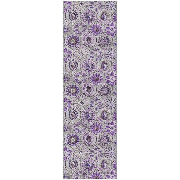 Mayfield Premium Machine Washable Abstract AMF1938 Purple 2 ft. x 7 ft. Runner Rug