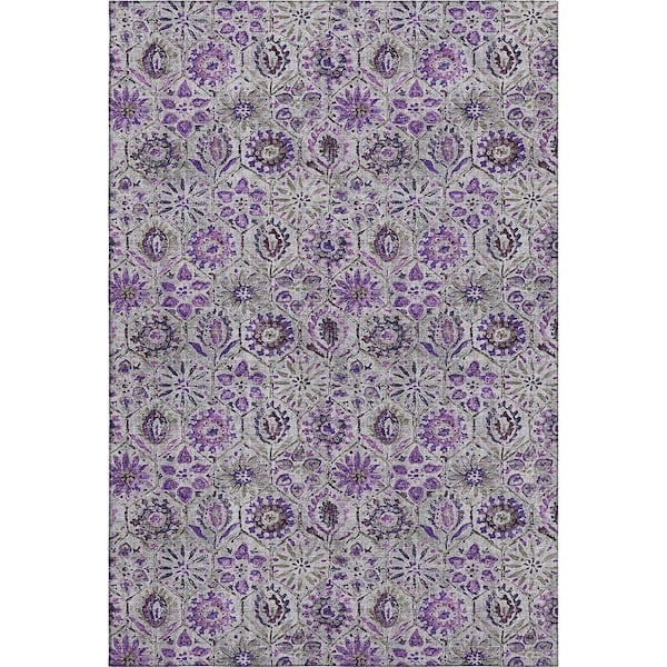 Mayfield Premium Machine Washable Abstract AMF1938 Purple 5 ft. x 7 ft. 6 in. Area Rug