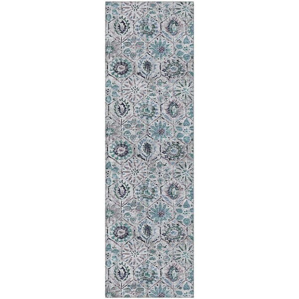 Mayfield Premium Machine Washable Abstract AMF1938 Teal 2 ft. x 7 ft. Runner Rug