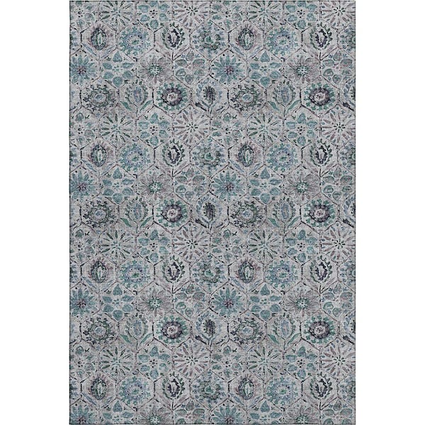 Mayfield Premium Machine Washable Abstract AMF1938 Teal 3 ft. x 4 ft. Area Rug