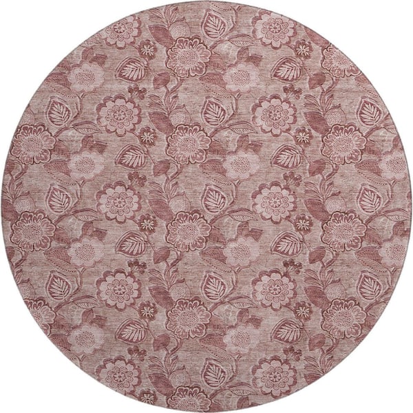 Mayfield Premium Machine Washable Abstract AMF1939 Blush 8 ft. x 8 ft. Round Rug