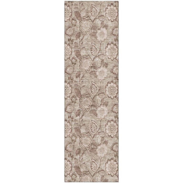 Mayfield Premium Machine Washable Abstract AMF1939 Brown 2 ft. x 7 ft. Runner Rug