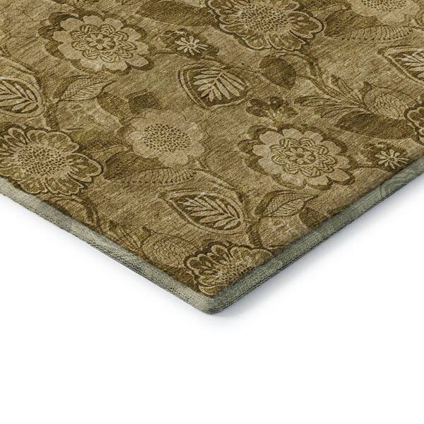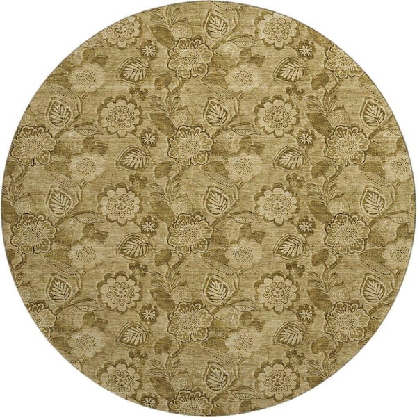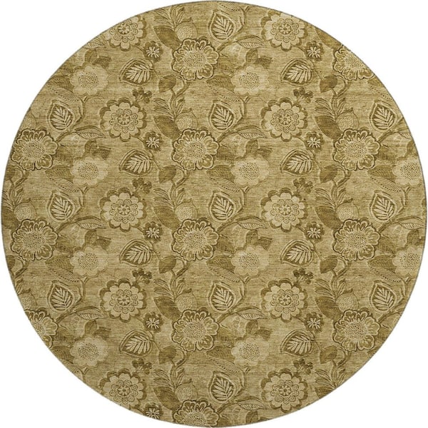 Mayfield Premium Machine Washable Abstract AMF1939 Mocha 8 ft. x 8 ft. Round Rug