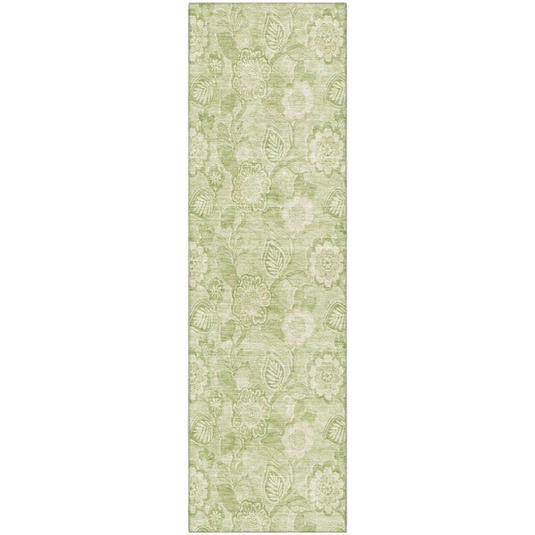 Mayfield Premium Machine Washable Abstract AMF1939 Sage 2 ft. x 7 ft. Runner Rug