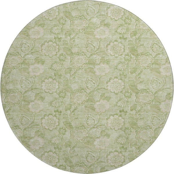 Mayfield Premium Machine Washable Abstract AMF1939 Sage 8 ft. x 8 ft. Round Rug