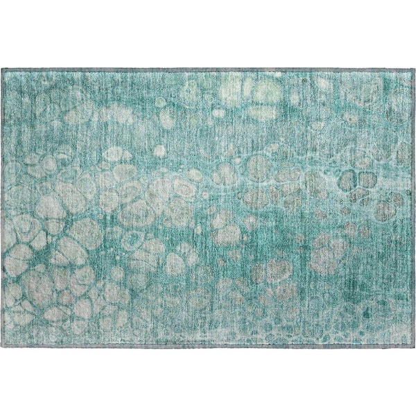 Mayfield Premium Machine Washable Abstract AMF1940 Aqua 2 ft. x 3 ft. Accent Rug