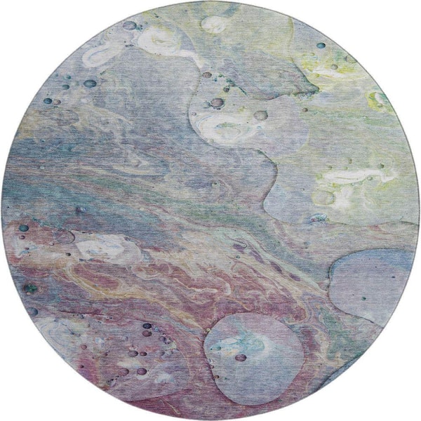 Mayfield Premium Machine Washable Abstract AMF1941 Blue 8 ft. x 8 ft. Round Rug