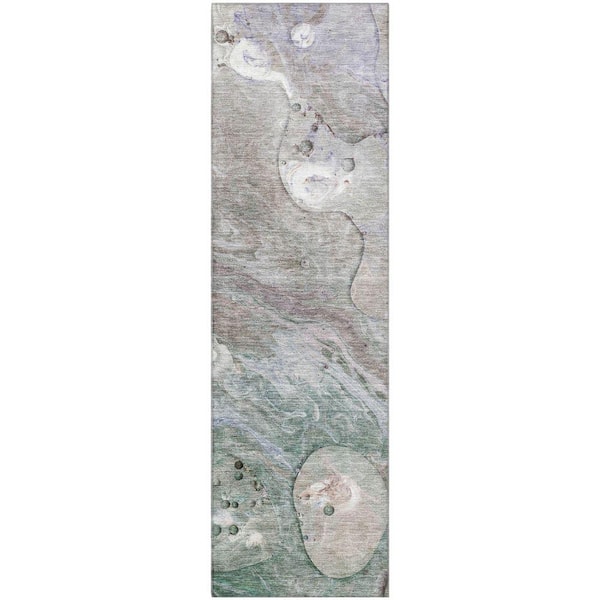 Mayfield Premium Machine Washable Abstract AMF1941 Khaki 2 ft. x 7 ft. Runner Rug
