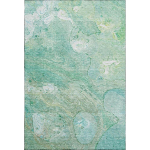 Mayfield Premium Machine Washable Abstract AMF1941 Teal 10 ft. x 14 ft. Area Rug