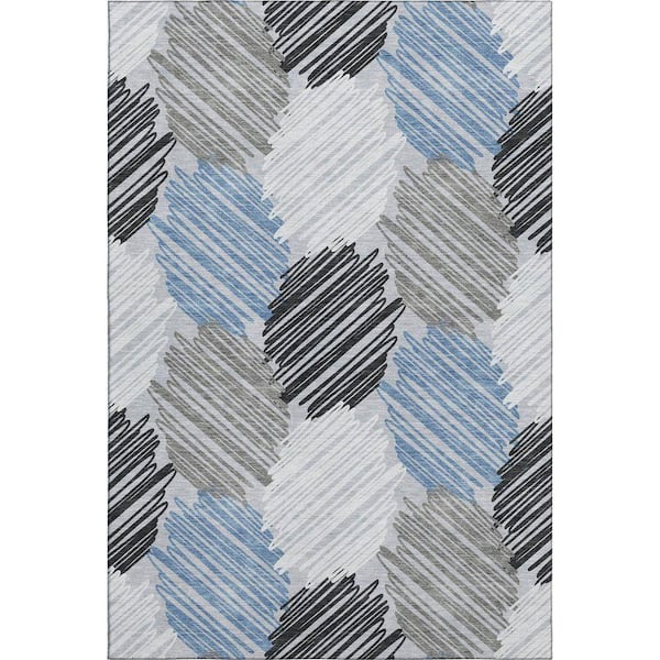 Mayfield Premium Machine Washable Abstract AMF1942 Blue 5 ft. x 7 ft. 6 in. Area Rug
