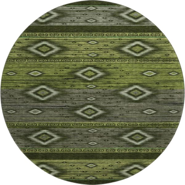 Mayfield Premium Machine Washable Abstract AMF1943 Aloe 8 ft. x 8 ft. Round Rug