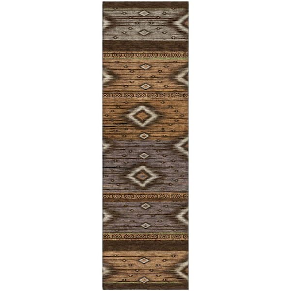 Mayfield Premium Machine Washable Abstract AMF1943 Chocolate 2 ft. x 7 ft. Runner Rug