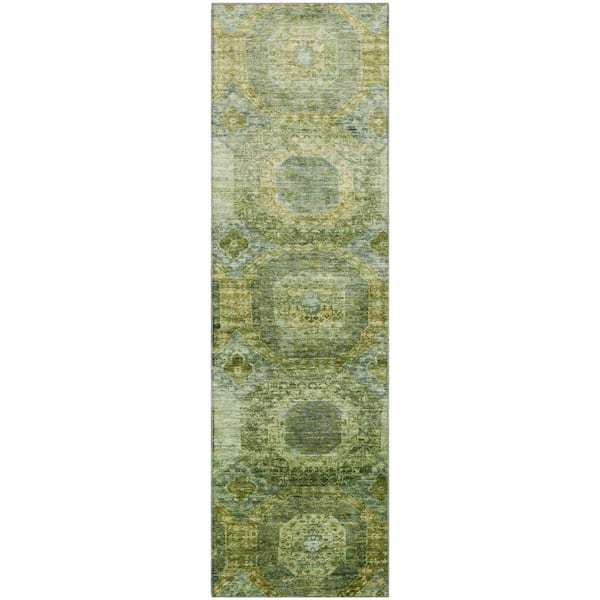 Mayfield Premium Machine Washable Abstract AMF1944 Aloe 2 ft. x 7 ft. Runner Rug