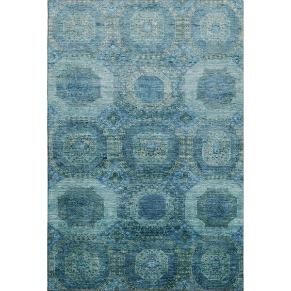 Mayfield Premium Machine Washable Abstract AMF1944 Blue 8 ft. x 10 ft. Area Rug