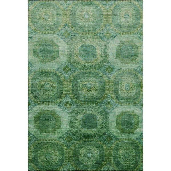 Mayfield Premium Machine Washable Abstract AMF1944 Emerald 3 ft. x 4 ft. Area Rug