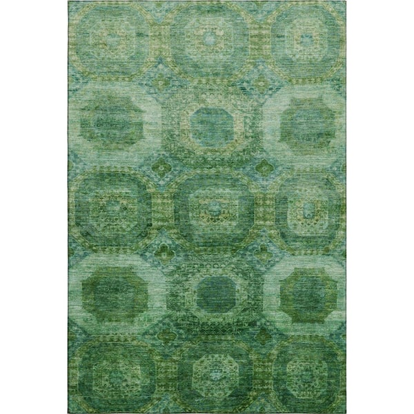 Mayfield Premium Machine Washable Abstract AMF1944 Emerald 9 ft. x 12 ft. Area Rug