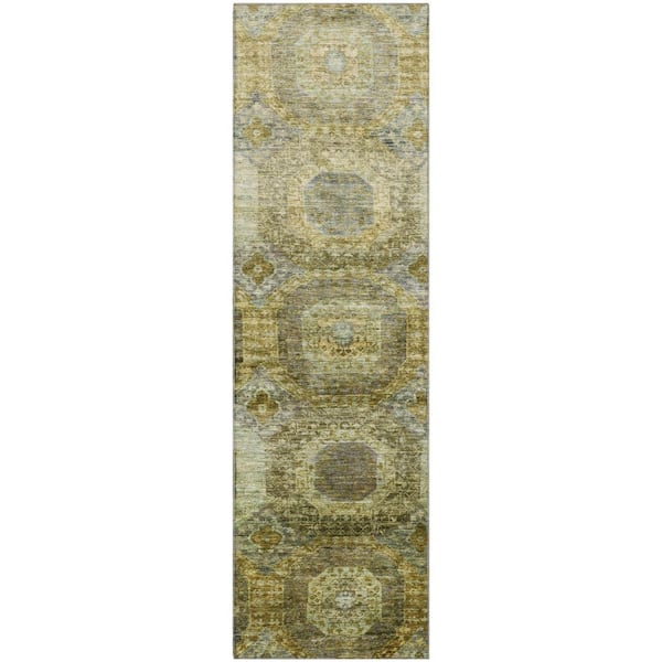 Mayfield Premium Machine Washable Abstract AMF1944 Gold 2 ft. x 7 ft. Runner Rug