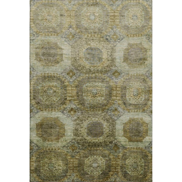 Mayfield Premium Machine Washable Abstract AMF1944 Gold 3 ft. x 5 ft. Area Rug