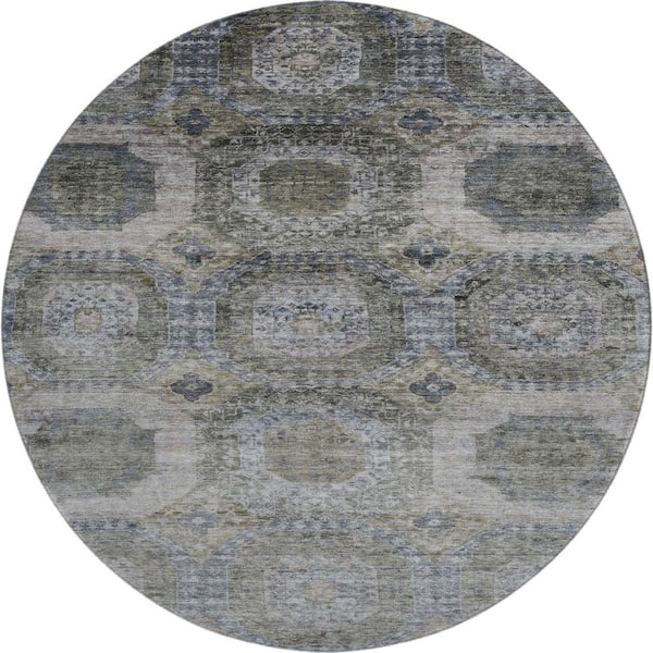 Mayfield Premium Machine Washable Abstract AMF1944 Mocha 8 ft. x 8 ft. Round Rug