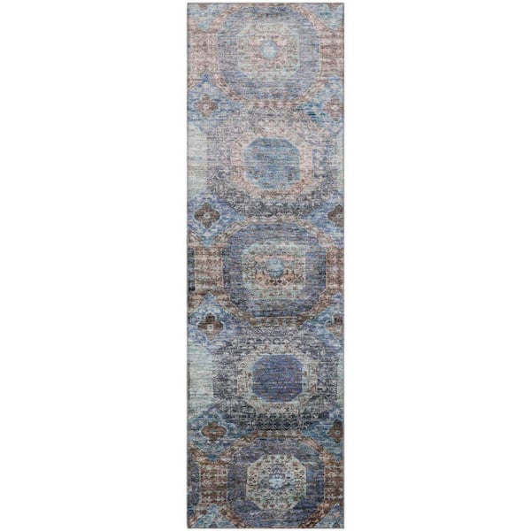 Mayfield Premium Machine Washable Abstract AMF1944 Teal 2 ft. x 7 ft. Runner Rug