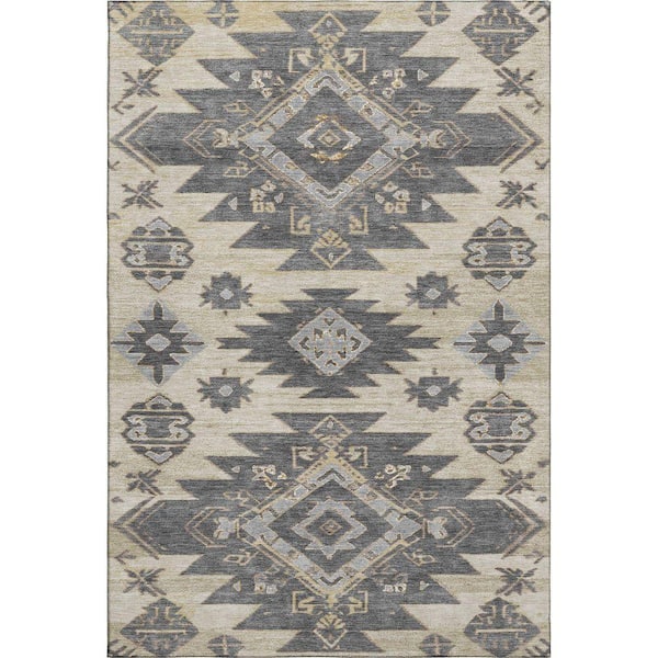 Mayfield Premium Machine Washable Abstract AMF1945 Beige 8 ft. x 10 ft. Area Rug