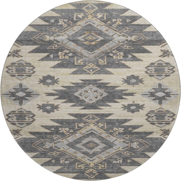 Mayfield Premium Machine Washable Abstract AMF1945 Beige 8 ft. x 8 ft. Round Rug