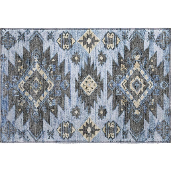 Mayfield Premium Machine Washable Abstract AMF1945 Blue 2 ft. x 3 ft. Accent Rug