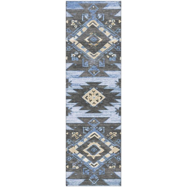 Mayfield Premium Machine Washable Abstract AMF1945 Blue 2 ft. x 7 ft. Runner Rug