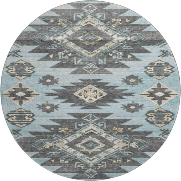 Mayfield Premium Machine Washable Abstract AMF1945 Teal 8 ft. x 8 ft. Round Rug