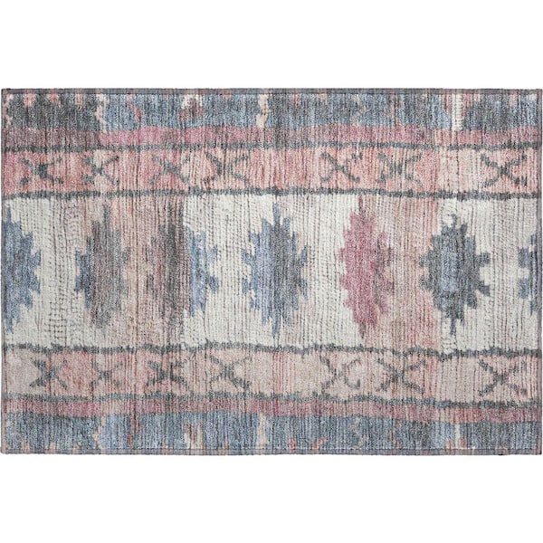 Mayfield Premium Machine Washable Abstract AMF1946 Denim 2 ft. x 3 ft. Accent Rug