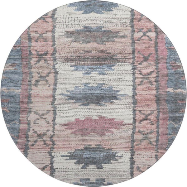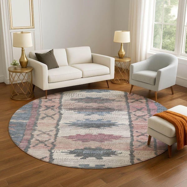 Mayfield Premium Machine Washable Abstract AMF1946 Denim 8 ft. x 8 ft. Round Rug