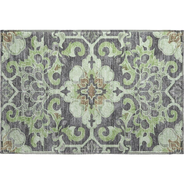 Mayfield Premium Machine Washable Abstract AMF1947 Aloe 2 ft. x 3 ft. Accent Rug