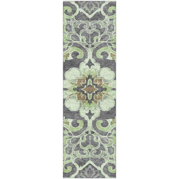 Mayfield Premium Machine Washable Abstract AMF1947 Aloe 2 ft. x 7 ft. Runner Rug