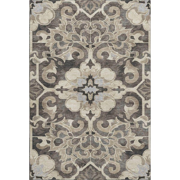 Mayfield Premium Machine Washable Abstract AMF1947 Chocolate 5 ft. x 7 ft. 6 in. Area Rug