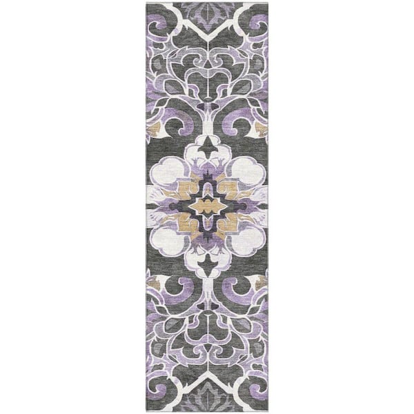 Mayfield Premium Machine Washable Abstract AMF1947 Purple 2 ft. x 7 ft. Runner Rug